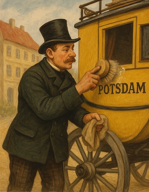 „Der Potsdamer Postkutscher putzt den Potsdamer Postkutschwagen.“